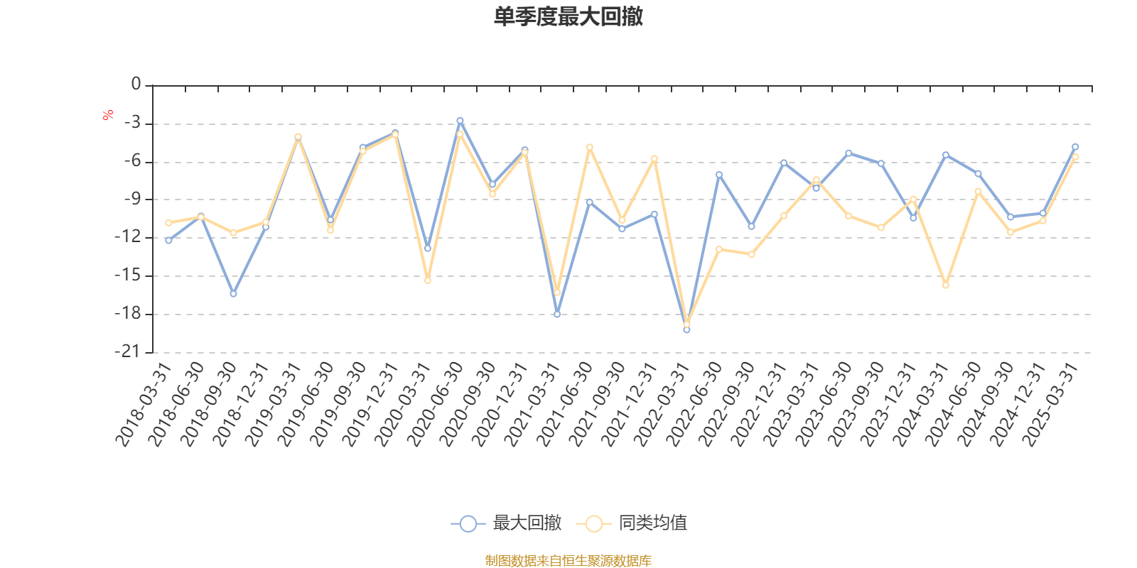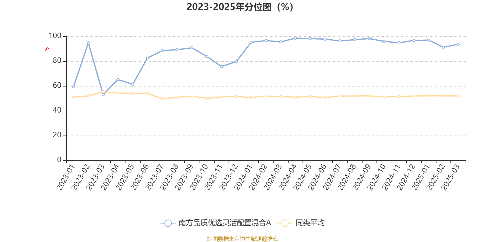 通过所选区间该基金净值增长率分位图,可以观察该基金与同类基金业绩比较情况。图为坐标原点到区间内某时点的净值增长率在同类基金中的分位数。