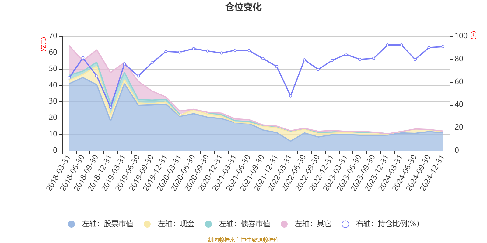 据定期报告数据统计,近三年平均股票仓位为80.76%,同类平均为79.88%。2024年一季度末基金达到92.56%的最高仓位,2018年末最低,为37.97%。